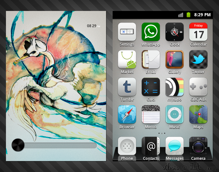Te dejo los dos. Te digo, el primero es el que tengo puesto yo y esta modificado por mi poniéndole una banda blanca en la zona de la barra de noticaciones. Creo que en las capturas se aprecia. Esta para la resolución de la htc desire.