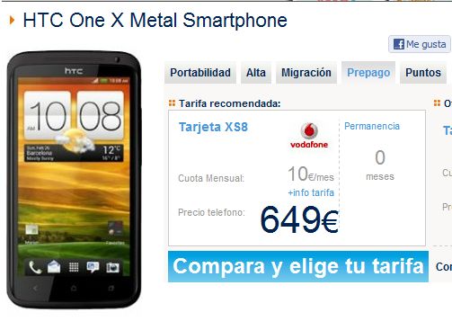 con vodafone dando de alta una linea nueva con cualquier tarifa,incluida la xs8 de 8€ al mes, 499€ el htc one x.