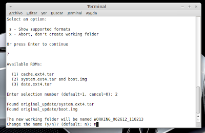 Seleccionamos system.ext4.tar and boot.img ((opción 2 y Enter para continuar))