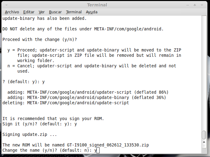 Crea tu ROM (para galaxy s2) En esta guía vamos a crear nuestra propia ROM para nuestro móvil. En concreto, para el Galaxy s2. Necesitamos: Ordenador con Linux, yo recomiendo Linux Mint o Ubuntu (yo uso Linux Mint) http://www.linuxmint.com/release.php?id=16 -Podéis instalarlo en una partición del disco duro y tener un DualBoot en el ordenador entre Windows y Linux (es muy sencillo y hay miles de tutoriales). Palabras clave: Dual boot, linux y windows, grub... Teléfono Galaxy S2 Rooteado, preferiblemente partiendo de una Rom Stock, para que el trabajo sea casi 100 x 100 vuestro. Podéis ver mis guías: -stock rom -rootear samsung galaxy s2 -instalar custom roms para samsung Empezamos: En el Galaxy S2, abrimos la aplicación CWM Manager, creamos un backup y le ponemos un nombre claro y reconocible. El teléfono se reiniciará en modo recovery y el proceso se realiza automáticamente. Cuando se reinicie enviamos, vía usb, la carpeta del mismo nombre que está dentro de clockworkmod/backup/ ((los archivos dentro son data.ext, system.ext, cache.ext, boot.img...)) A partir de ahora todo se realizará en el ordenador: Como ya dije, utilizo Linux Mint. -Abrimos el Gestor de Software y buscamos "java". Instalamos sun-java6-jre,sun-java6-plugin, openjdk-6-jre ![]() A continuación descargamos la cocina de rom de XDA: https://github.com/dsixda/Android-Ki...rchives/master pulsamos en Download.tar.gz. Sobre el archivo descargado, botón derecho del mouse y extraer aquí. Podéis renombrar el archivo dsixda-Android-Kitchen-0.196-1-g3d78ceb a cocina Rom o algo así. Dentro de la carpeta hay más carpetas y un ejecutable: (original_update, scripts, tools, menu y Readme). Ahora la clave consiste en copiar el backup que hicimos en el móvil dentro de la carpeta original_update. (ojo, no copiéis la carpeta dentro de original_update, sino el contenido de la carpeta). Botón derecho sobre Menu y click en abrir y luego en ejecutar en un terminal. Pulsamos opción 1 (set up working folder from ROM) y Enter para seleccionar. Pulsamos Enter para continuar. Seleccionamos system.ext4.tar and boot.img ((opción 2 y Enter para continuar)) Cambiar nombre del working folder yo selecciono "n" y Enter para continuar. Añadir boot.img, seleccionamos "y" y Enter para continuar. ¿Queremos ver la info de nuestra Rom? "y" y Enter para continuar. Enter para volver al menú principal Los cambios que haremos en nuestra Rom serán: -Cambiar el nombre -Añadir Bootanimation y su sonido -Añadir aplicaciones de Inicio y quitar otras que no queramos -Cambiar fondo de pantalla por defecto -Personalizar algún icono -Cambiar el nombre: Seleccionamos opción 8 y Enter para continuar. ¿Queremos cambiar el nombre? "y" y Enter para continuar. Escribimos el nuevo nombre y Enter para continuar. Nos confirma que ha sido modificado, Enter para continuar. Vamos a ver si realmente lo ha modificado, seleccionamos opción 10 y Enter para continuar. Pulsamos Enter para volver al menú principal. -Añadir Bootanimation y su sonido: Yo he elegido esta, con su sonido de inicio custom y todo. ![]() -Descargamos Animación Sonic 1.zip (servidor MediaFire) Dentro del zip hay 3 archivos bootanimation.zip y PowerOn.ogg. El archivo instrucciones ni caso. Seleccionamos la opción "0" y Enter para ir a opciones avanzadas. Seleccionamos la opción "18" y Enter para continuar. Pulsamos "y" y Enter para continuar. Nos dice que se a creado la carpeta local, Enter para continuar. Dentro de la carpeta de nuestra cocina, seleccionamos WORKING_062612...lo que sea. Entramos dentro de la carpeta data Abrimos la carpeta local. Y pegamos el archivo bootanimation.zip dentro ((WORKING_062612.../data/local/)) -Ahora añadiremos el sonido personalizado del bootanimation. Volvemos a abrir la carpeta WORKING_062612... Entramos en la carpeta etc. Dentro de la carpeta etc pegamos (remplazamos) el archivo PowerON.ogg La ruta del PowerON.ogg es WORKING_062612.../system/etc -Añadir aplicaciones de Inicio y quitar otras que no queramos: Aquí hay que remarcar dos cosas importantes. La primera, ¡OJO!, ¡mucho OJO! con lo que quitamos y ¡mucho OJO! con añadir aplicaciones de pago sin el consentimiento del autor. Yo decido añadir el ES Explorer y El Nova Launcher, la versión free y quito el launcher de serie. Hay dos maneras de añadir aplicaciones: dentro de system/app y dentro de local/data/app. Todo lo que esté dentro de local/data/app se borra con los wipes, se desinstala fácilmente y se puede actualizar desde el market (Play Store). Todo lo que se añada a system/app solo se podrá borrar desde un gestor de archivos, como pasa con las dichosas apps que añaden las compañias telefonicas y los samsung hub. Vamos allá: Seleccionamos la opción "0" y Enter para continuar. Seleccionamos la opción 13, añadir data/app y Enter para continuar Pulsamos "y" y Enter para continuar. Nos confirma que se ha creado la carpeta /data/app. Enter para continuar. En nuestra cocina, abrimos WORKING_062612... Abrimos data Abrimos app Y pegamos la aplicacion que queramos. En mi caso el ES Explorer: -Es Explorer.apk (servidor Mediafire.com) -Ahora vamos a substituir el launcher de serie por el nova launcher. Partimos como siempre de nuestra cocina en la carpeta WORKING_062612... Abrimos system Abrimos app Borramos TouchWiz30Launcher (el launcher de origen) Si lo borramos Y pegamos el Nova Launcher: -nova.apk (servidor Mediafire.com) Los siguientes paso son los de edición gráfica. No son ni más fáciles ni más difíciles. Solo tienen una clave: editar - guardar - firmar. Yo siempre los firmo para evitar problemas. -Vamos al gestor de software y nos descargamos Gimp (es un editor gŕafico). Practicar un poco con Gimp creando vuestras propias imágenes. Ya veréis que es muy fácil de utilizar. No obstante, intentaré que las capturas de pantalla sean claras. continua... Última edición por supersinplomo Día 26/06/12 a las 16:33:26. |