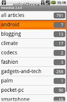 http://www.elandroidelibre.com/2009/...es-de-rss.html Mi jornada la boral es típica: Trabajo de 9 a 14 y de 16 a 19 horas, y esas 2 horas a mediodía las dedico a comer. Para una mente inquieta como la mía y la de los lectores de este blog, 2 horas a mediodía simplemente comiendo pueden llegar a ser un suplicio... El cual podemos evitar, poniéndonos al día de las noticias más interesantes o los artículos más didácticos de la red de manera gratuita y cómoda.Lectores de RSS, ese es el tema que nos ocupa hoy y que esperamos poder aclararos de la forma más concisa pero clara. Vamos a analizar los programas más importantes con esta función para Android y os daremos nuestro modesto consejo de cuál utilizar... Aunque como siempre habrá funciones que algunos no uséis y algunas aplicaciones que no os convenzan; para gustos, los diferentes programas ![]() BlueRSS Ya bajadas las fuentes, el entorno se presenta fuera de lo común; el fondo de pantalla es negro y las fuentes son azul celeste oscuro, y esto permite un lectura cómoda. Además, cuando lees un artículo, un icono a la izquierda del mismo pasa de verde a apagado, por lo que es muy sencillo saber qué has leído y qué te queda pendiente. Otro de los puntos a destacar es que puedes refrescar todas las fuentes y ordenarlas como te plazca, elegir como siempre el periodo de refresco de las mismas y si quieres que te notifique en la barra superior las nuevas noticias. Tiene soporte offLine, lo que es de agradecer. A pesar de que a priori parece cumplir casi todo lo que se necesita, tiene 2 carencias: La primera es que no te da la posibilidad de bajarte todo el contenido de golpe sino que carga las imágenes y demás contenidos cuando lees la noticia (eso sí, de manera MUY rápida); la segunda carencia es más bien un dolor ocular cuando vemos la traducción al castellano, que es realmente muy mejorable. De cualquier modo, y a pesar de estas 2 cosas "a mejorar" Esperemos que hagan como MADRID y las mejoren de manera sencilla, BlueRSS es un magnífico lector de noticias muy sencillo de usar y con casi todas las funciones que se necesitan. Greed Lite El uso con el dedo es muy sencillo y tienes incluso la posibilidad de poner determinadas fuentes entre tus favoritos. También tiene una opción de pago que da soporte a podCast, lectura fuera de línea y subida de artículos a Twitter. En general, un lector a tener en cuenta aunque la lentitud y la no posibilidad de actualizar todas las fuentes de golpe lo lastra un poco. NewsRob Nos encontramos ante un programa tremendamente versátil y con muchas posibilidades de configuración; nos ofrece soporte completo offLine, posibilidad de cambiar de directorios la caché de los artículos y las imágenes y qué queremos que se descargue. Además es una aplicación más rápida que las 2 anteriores, y parece en general más depurada que BlueRSS y Greed. Tienes la posibilidad desde la página principal de leer todos los artículos de todas las fuentes y cuando leemos uno se quita la marca de pendiente de la izquierda, igual que BlueRSS. ![]() En resumidas cuentas, hay varias posibilidades muy pontentes dentro de Android para la lectuda de noticias, y yo hasta ahora había pasado las horas de mediodía con Greed. La gran desventaja de no poder actualizar todas las fuentes y su lentitud hacen que a partir de hoy mi compañero de lectura sea NewsRob, que aparte de gratuíto es versátil, completísimo y muy muy rápido.