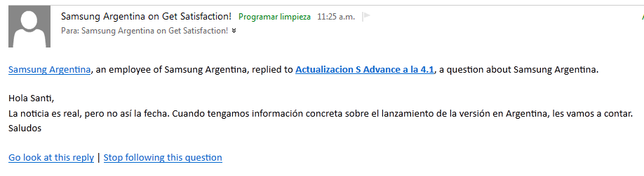 Bueno como yo les había dicho, no iba a parar hasta obtener una respuesta oficial de samsung. Despues de preguntar por todos lados hoy me llegó una respuesta del equipo de Samsung Argentina: