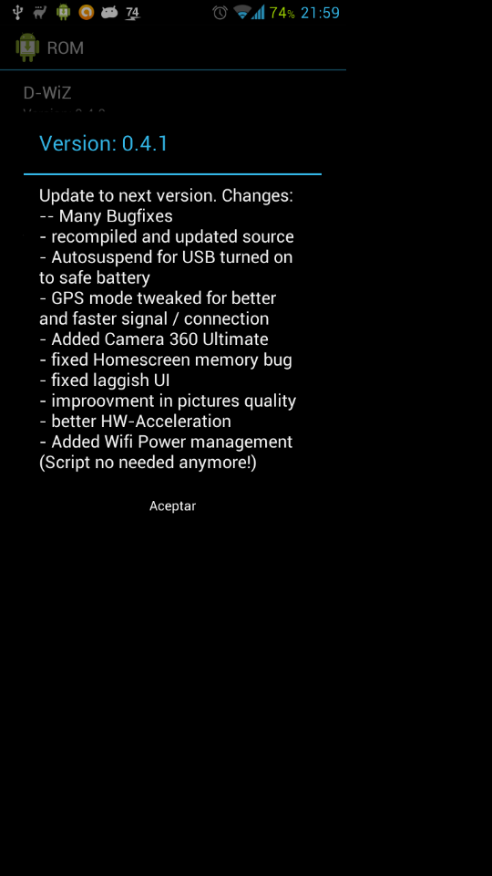 Putada que hasta mañana no ponga el changelog..... pero normal con el ferrete que lleva me edito: vale no me he dado cuenta que dice q se puede mirar el change log antes de instalar. Ya es demasiado tarde..... La he puesto con los dos wipes y de primeras muchos de fc de la app camara 360 y me parece que me he quedado sin camara y eso que ahora tengo 3 en el movil. Las prisas son malas......... Última edición por m m e Día 07/11/12 a las 22:31:00. |
