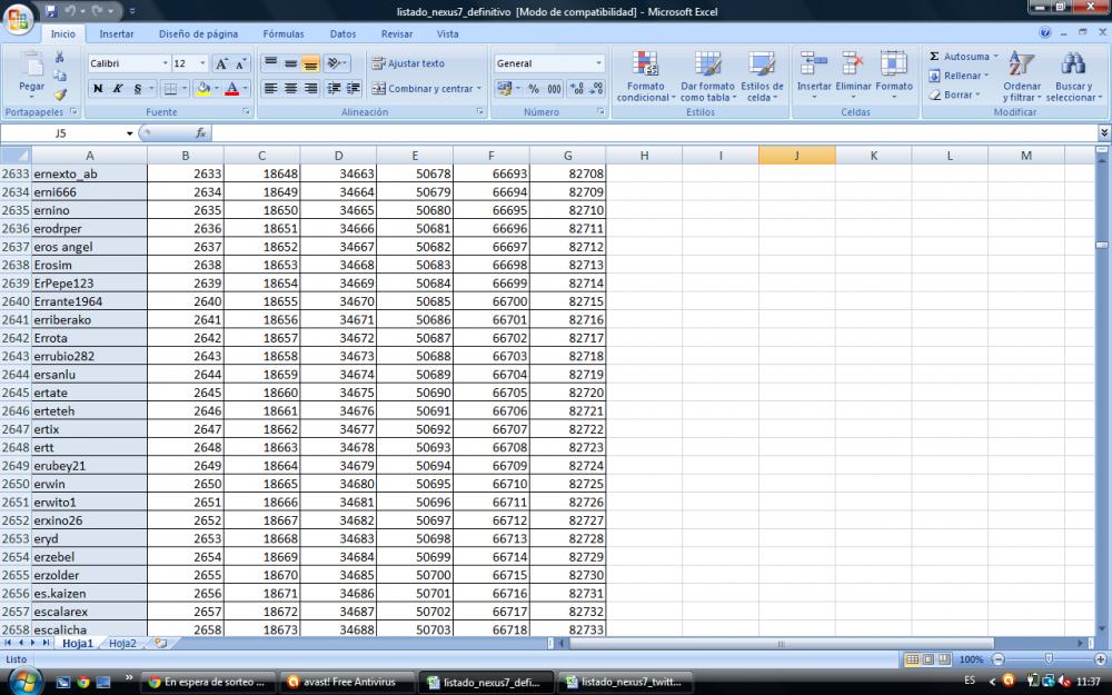 Listado de participantes y sorteo de la Nexus 7