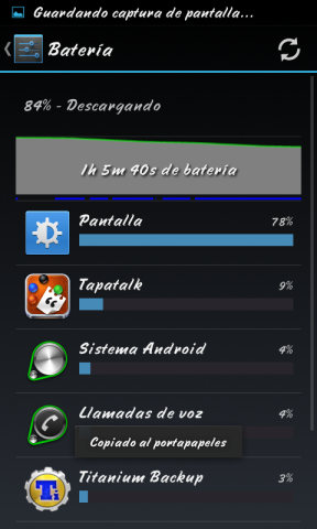 Lo que pasa (y como bien advierte el programa la primera vez que lo abres) es que algunas veces al ser modificados los archivos del ril y/o módem de la rom (entiéndase completamente stock), la aplicación no puede hacer una lectura correcta del nivel de cobertura por lo que entrega un valor constante de 85dB... También aprovecho de mostrar mis consumos con la LDI v1.1 de klander (a la espera de la 1.2) Inicio del primer ciclo, con el kernel de serie sin tocar nada en voltage control (por lo tanto cfq-ondemand, 200-1200Mhz,y con los voltajes que en escogió Jb), siempre en red automática y datos activados, brillo al 30-40%, crossbreeder 3.9.13v2 y liteada un poco (117 aplicaciones en total contando 14 congeladas). Creo que eso es todo... Pinta muy bien la cosa para mi modo de uso... XD ![]() ![]() ![]() Saludos.. |