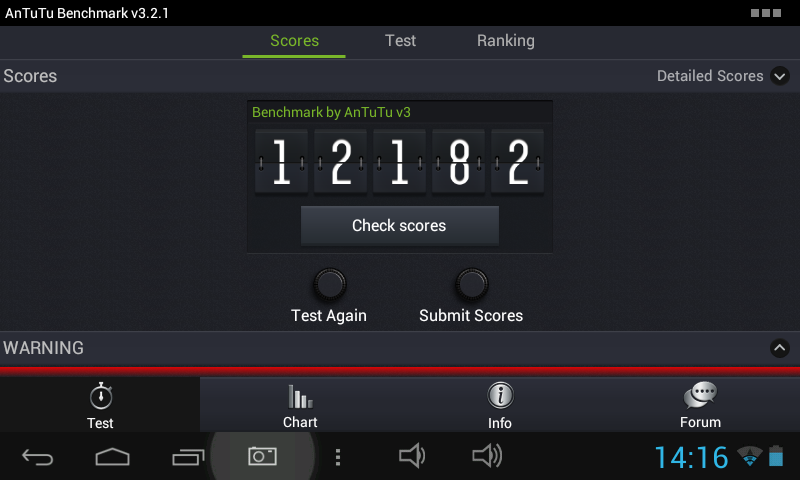 Tengo exactakmente la misma puntuacion de ANTUTU XD y si te fijas bien deveria de darnos 13.000+ pero el kernel parece que no fuera compatible con antutu del todo por que no da score de lectura y escritura de SD, asi que anda por los 13.000+ el score real , y si va muy bien este kernel, sin lag suena muy bien, todo bien, si pudieramos hacer overclock a la GPU a 400 MHZ quiza lograramos los 14.000+ en antutu es muy bueno esto