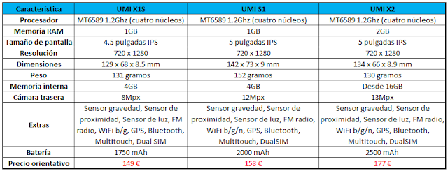De momento os paso una foto del S1 y una comparativa entre los 3 modelos: