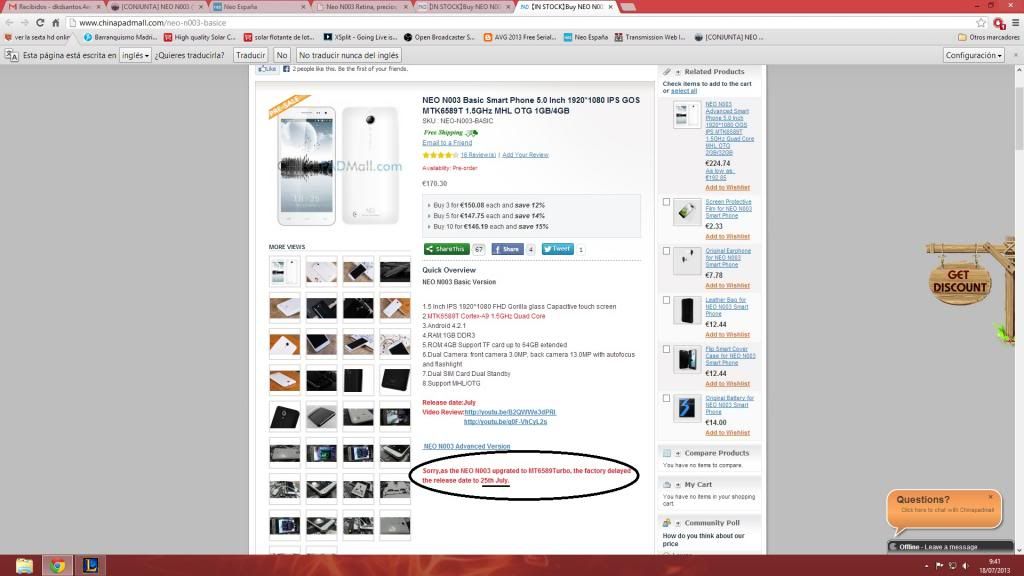 Puedes comprar la bateria directamente a antelife.com por 18$. Y sobre lo de que no se sepa aun el precio.. Nuestra tienda deja bastante que desear en cuanto a peso, no se que nivel de presión ejercen sobre fábrica pero si me llega antes el movil de China que el de tienda cancelare este y paso de la garantia que con el sobrecoste lo reparo y ya esta. Para añadir más información ya que la tienda es bastante nula aquí teneis una clara imagen de lo que va a pasar con los lanzamientos.