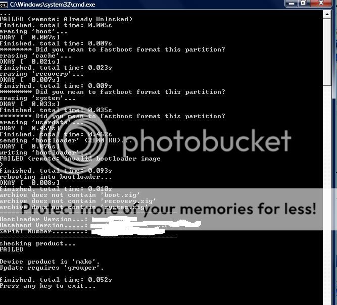 Básicamente, estas intentando instalar la imagen del Nexus 7 en un Nexus 4, ya sabes, a bajar la imagen del Nexus 4, alias MAKO.