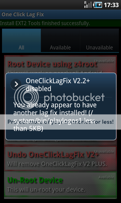 ayuda, despues de instalar etx2tools no me aparece oclf v2.2 en verde, me dice......you already appear to have another lag fix installed. /system/bin/logos 1 less than 5kb.