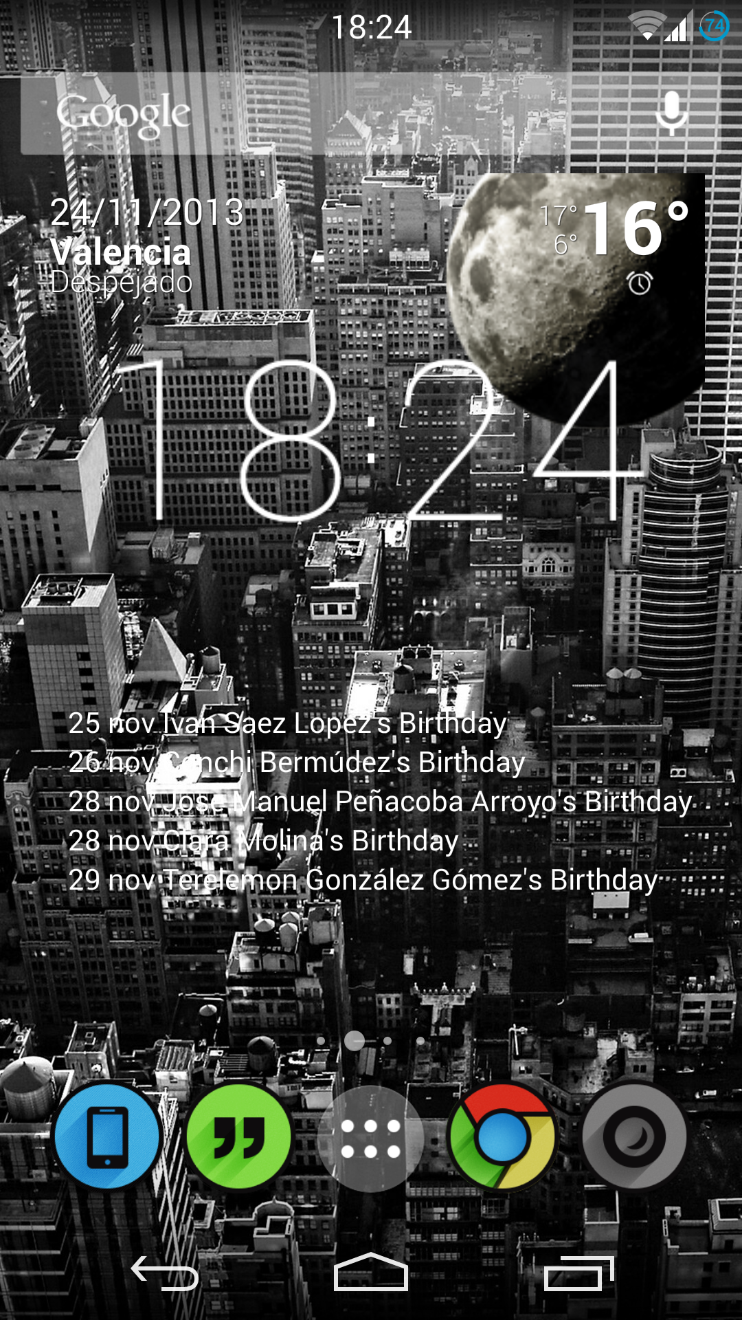 ahora el nexus 5 le tengo muy tranquilito y sin personalizar mucho hasta que tenga tiempo y me ponga con el supongo ejejje pero puedo daros algunas ideas de lo que quiero hacer porque es basándome en como tuve una vez el galaxy nexus.. por si os interesa os dejo unas capturas de un escritorio que le hice al gnex y cuando lo tenga en el nex5 también subiré capturas