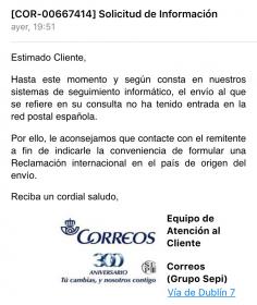 Yo estaba en un caso similar al comentado más arriba. Compré un Redmi Note 3 el 29 de enero y el último estado que tengo es local mail tracking el 22 de marzo, pero en correos no sale ni registrado.