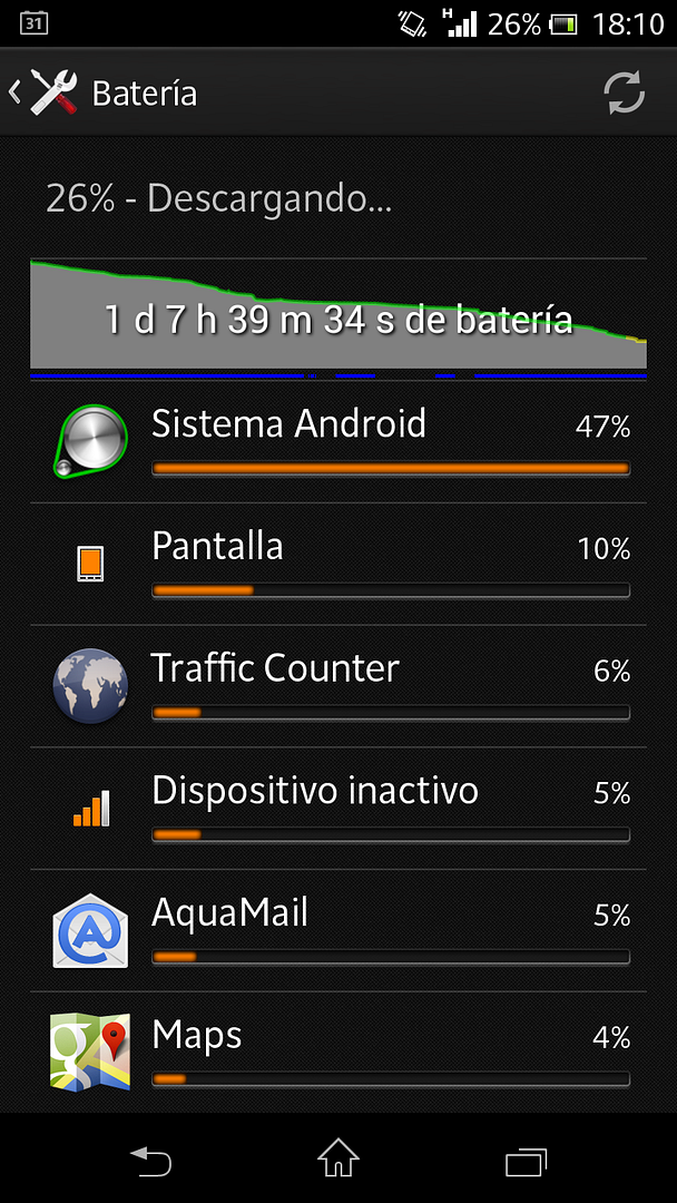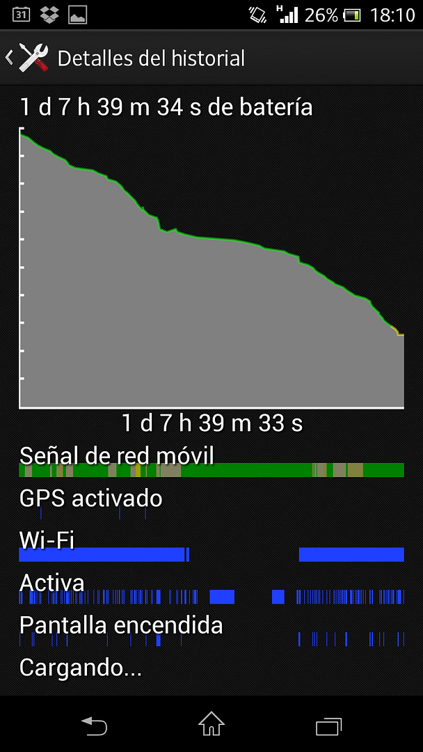 A ver qué tal se comporta con el paso de los días. Por lo pronto no lo veo mal del todo el consumo, aunque tiene momentos que la batería cae que da gusto y tampoco uso aplicaciones que sean muy exigentes (Whatsapp, Opera mini, Cámara, Quickpik...)