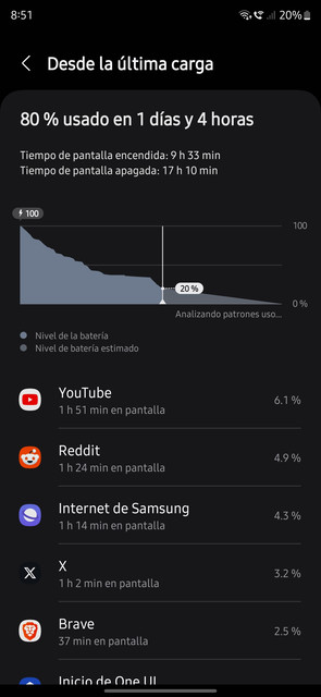 Llevo dos días con mi S24 ultra, vengo desde un Xiaaomi 11T que amé, y estoy un tanto preocupado por la duración de batería... Llevo un 52% de consumo, el día de hoy, con 2 h y 43 mins. de pantalla, se me agota muy rápido y ya hasta activé el modo ahorro sin mucho éxito... Qué me recomiendan? No noto nada raro o de consumo excesivo en las estadísticas, simplemente se agota y ya. Estoy atento y les agradezco. ![]() Hasta pasado unos días no verás el consumo real ya que tarda en adaptarse. Luego mírate algún vídeo en YouTube sobre ahorrar batería en samsung ya que hay muchas opciones que están activadas y gastan más. |