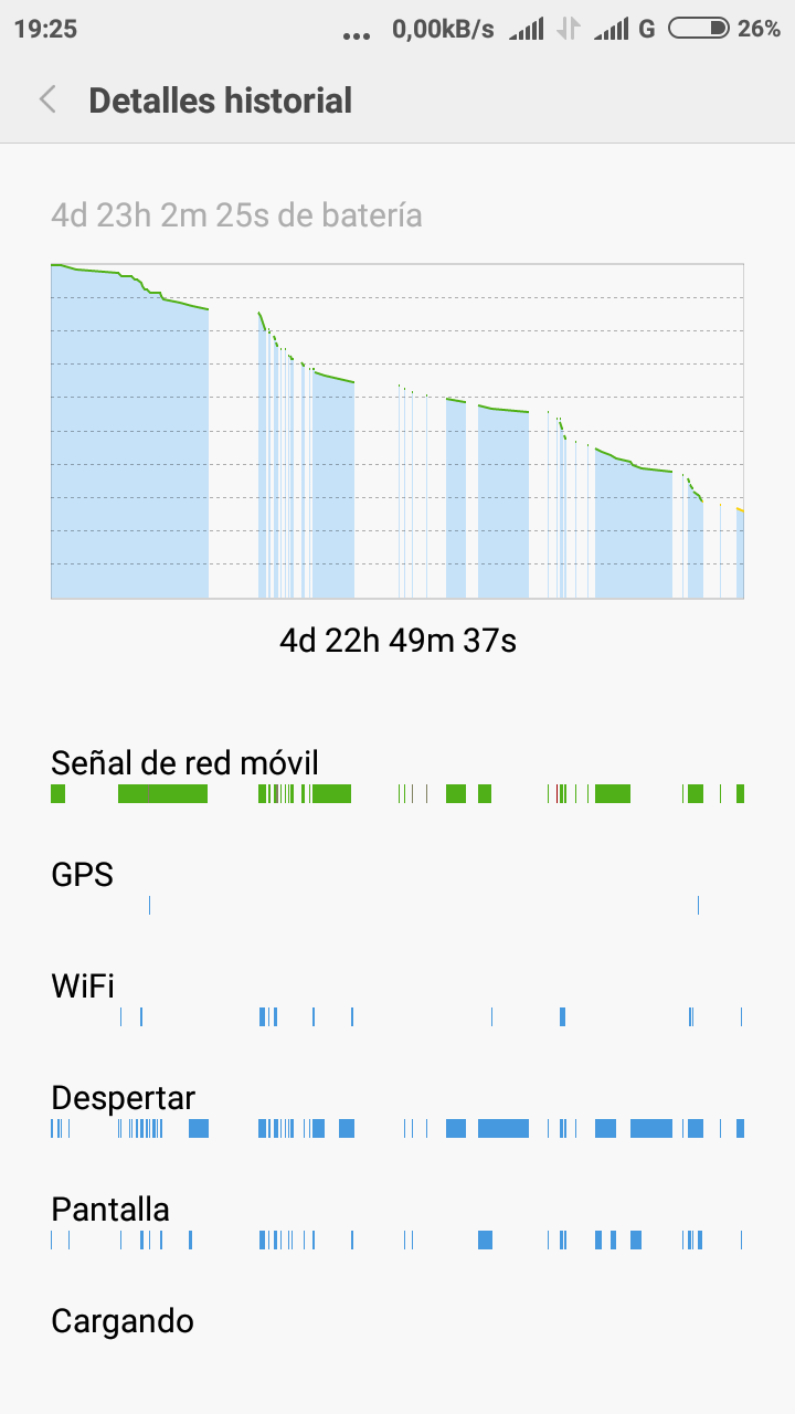 La duración de mi batería está en unos 4 días de uso moderado y unas 8 horas de pantalla tal como te muestro a continuación: