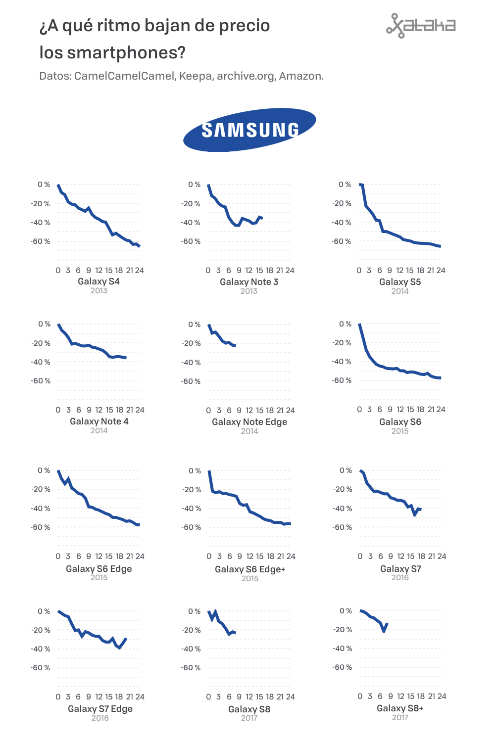 No hay que ser muy inteligente para saber que bajan de precios. No hay que buscar gráficas en google para eso. Lo que es una mentira es decir que "bajan porque no venden". Se llama ESTRATEGIA COMERCIAL. Apple tiene la suya y el mundo Android, con mucha más competencia interna, tiene la suya. Busca gráficas sobre eso...