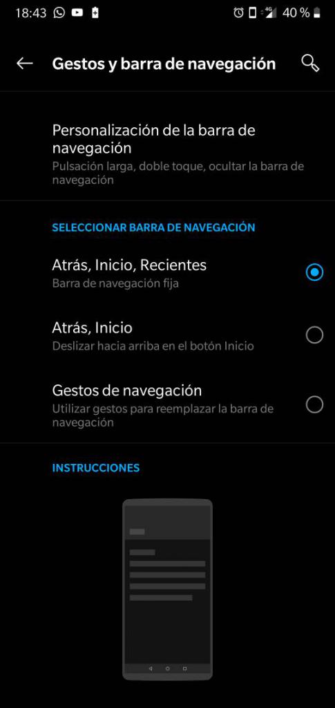 Arriba te he puesto varias screens del menú de ajuste " nativo del sistema de un one plus 6 " por cierto stock , sin modificar, vamos de serie , donde desaparecen totalmente los botones de pantalla , dentro y fuera incluso dentro de las apps. Vamos que desaparecen totalmente los botones, no hay botones , tienes que hacer el gesto de sacar la app hacia fuera con el dedo, cosa que detesto.