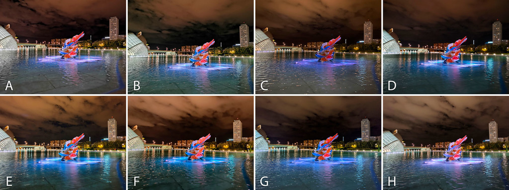 Foto H. Al menos en mi caso, yo no he visto nunca un cielo de ese color por la noche, fijaros en la diferencia entre esa foto y las de los 7 otros móviles... el Pixel 4 es el de la foto H obviamente. No sé, que cada uno saque sus conclusiones...