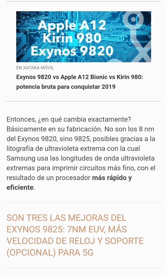 En cuanto a la CPU muy probablemente ambos lleven los Cortex A78 (por ahora Exynos lleva Cortex anteriores personalizados y ya vemos el resultado...) y les queda ya el tema del consumo y de la gestión de la batería porque de GPU van a ir sobrados, de CPU ídem pues queda este aspecto para marcar las diferencias finales.