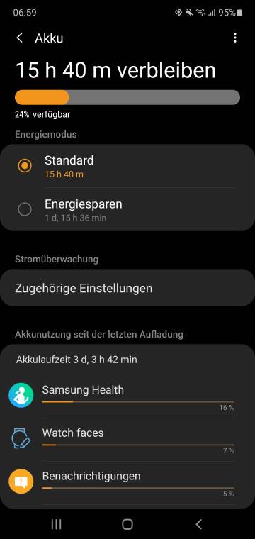 Lo apago por la noche de 00h hasta las 06h aproximadamente. Solo lo despierto con un toque y no llevo wifi nunca conectado y el gps solo cuando lo quiero usar y hago unos consumos increíbles. Se que la mayoría utilizáis todo conectado pero yo no necesito tener wifi o gps si no ño estoy utilizando y el NFC lo mismo no pago con el reloj . No hago conteo de sueño porque no necesito esos registros si llevo el conteo del corazón cada 10 minutos y obviamente el Bluetooth. Aca mis consumos Una cosa que no entiendo es por qud gasta tanto Samsung healt no lo entiendo la verdad. |