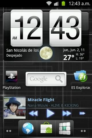 Todo corriendo en floyo 0.30 Animense a poner sus home para que todos podamos conoser mas widgets y fondos que tengan Enviado desde mi X8 usando tapatalk Última edición por kratos96 Día 29/06/11 a las 17:05:55 |
