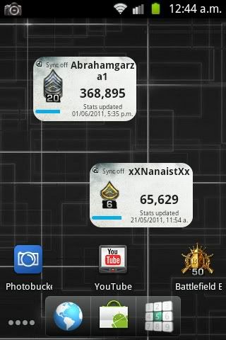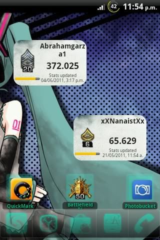 mi launcher es el (adwlauncher ex) para el calendario uso jorte que es gratis en el market, en la parte de la pagina principal tengo el widget de weather & toggle widgets con el tema h7c, y el reproductor power amp, el widget de los estados se llama widgetsoid, tambien el widget de busqueda inteligente por default del movil, y los ultimos widget son los estados de mis cuentas del bad company 2. ![]() ![]() ![]() ![]() cuando lo cambie lo publico Última edición por kratos96 Día 02/06/11 a las 08:21:16 |