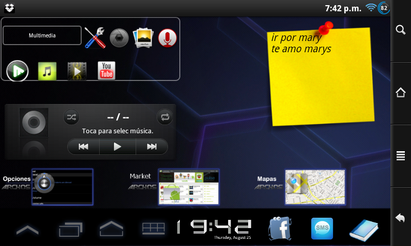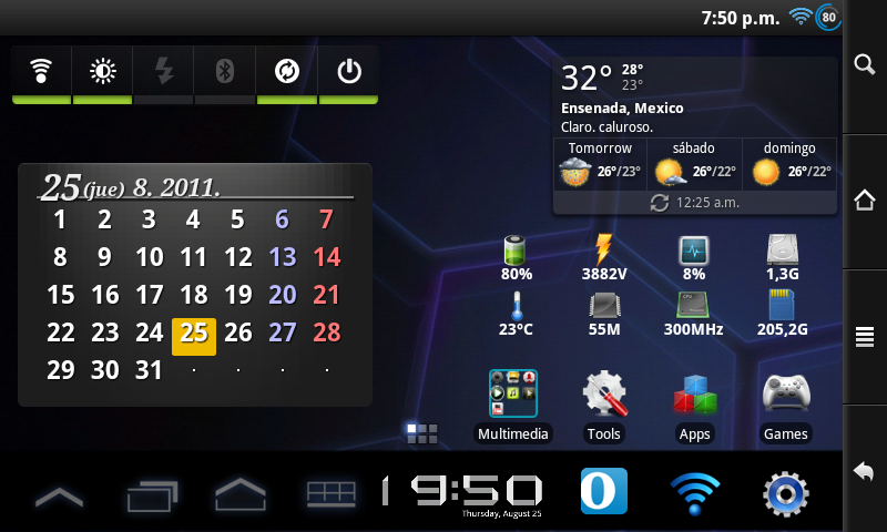 En principio todo me fue bien hasta que instalé el adw launcher ex y la tablet comenzó a ir lentísima y reiniciarse de vez en cuando con algún que otro cuelgue.
