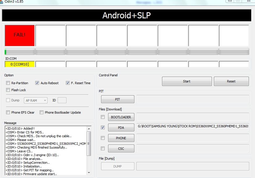 Por lo tanto realicé el metodo de Odín con la Rom de Hyperion pero me da error. Voy a colocar las imagenes a ver si alguien me puede ayudar. Muchas gracias PD: A veces ni Odin me reconoce el dispositivo |