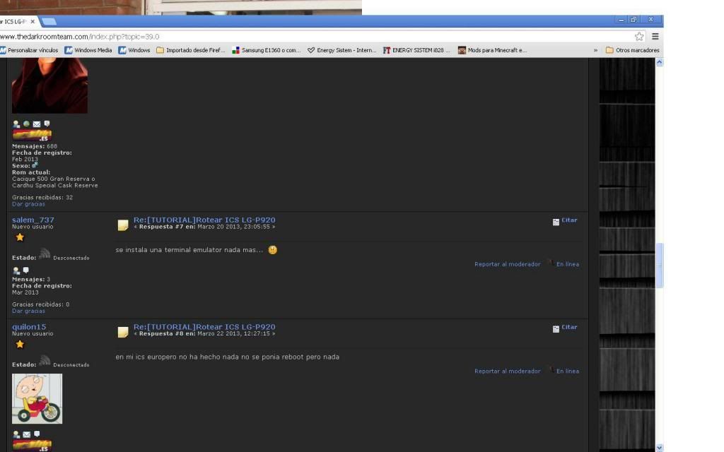 En cuanto a vuestro metodo, yo no te he dicho que me lleve a otro, y siento que te lo hayas tomado como una critica. Yo intente vuestro metodo, y te aseguro que con MI ics y MI movil aplicando estrictamente lo que decis en el primer post se me instala la app esa. ¿porque pasa? no lo se . Solo lo comentaba porque creo que despues del curro que os pegais os interesaria conocer cualquier incidencia que pudiera producirse y tambien te digo que no solo me pasa a mi, pues habia otro usuario que en vuestro foro que contó lo mismo. Y por favor, no lo tomes como una critica porque tambien decia en mi post que creo que el problema no es de vuestro metodo, porque si a otra gente le resulta es claro que el metodo funciona, es que a mi, y a otro usuario, nos ocurre es cosa extraña. Y eso no es una opinion, es la realidad.