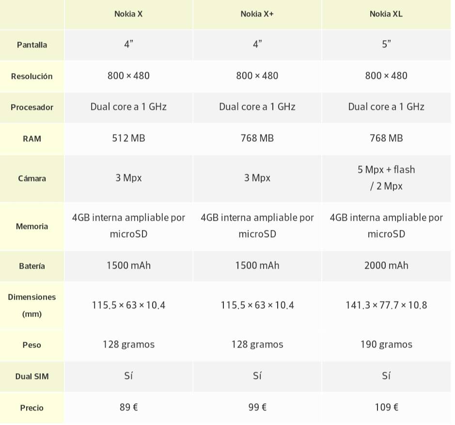 ¿sabeis las especificaciones de los nokias x x+ y xl? Tienen buena pinta por el precio