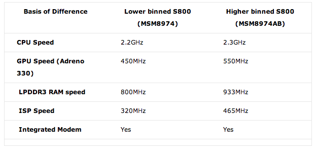 Es un simple lavado de cara del 800, para retener a los fabricantes mientras tienen listo el 805, 810 y demás. Qualcomm era fiel a su renovación de procesadores desacompasada con la renovación de generaciones de smartphones, así que cada 6 meses le da una vuelta más a su procesador actual, y le cambia levemente el modelo.
