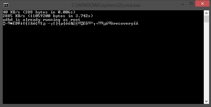 Ahora tengo un nuevo problema y es que cuando ejecuto el flash-recovery en el pc ha empezado todo a ir bien y me ha pedido 2 veces dar permisos en el telefono, pero de pronto se ha quedado asi la pantalla del CMD que se ha abierto y el telefono no se ha reiniciado. [/url]