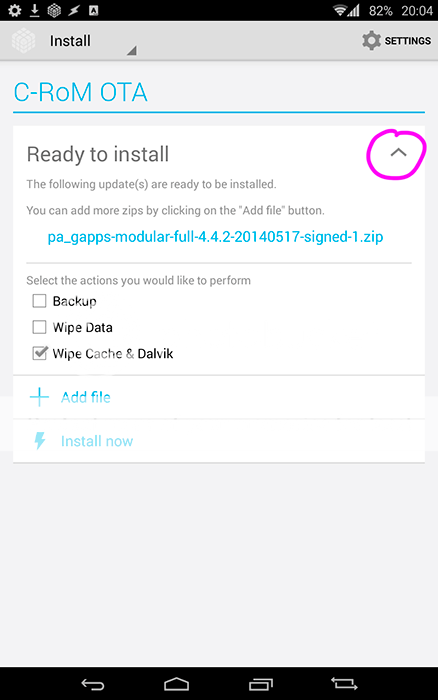 ![]() Por defecto, la flecha que he marcado en rosa está hacia abajo indicando que puedes desplegar algo, y ahí es donde indica 3 opciones: Backup, Wipe data, Wipe cache + dalvik (por defecto viene el tercero seleccionado). Acabo de actualizar las gapps sin problemas. Como podéis ver en la captura la barra inferior de botones táctiles es personalizable y podéix ver que he añadido el botón "Volver a la aplicación anterior" (4º botón) que es mucho más rápido que ir a "Aplicaciones recientes" (3r botón) y buscarla. Saludos Última edición por superlativo Día 17/05/14 a las 20:17:41. |