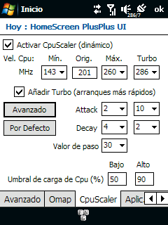 Pues memobgb.... ya me habia fijado tambien en el CPUScaler por eso en mi post anterior lo puse con las velocidades que habia establecido... la verdad el HomeSecreen Plus es mas estable y da mas mhz estables en la viva.... 286 mas que el XCPUScalar que da maximo 221