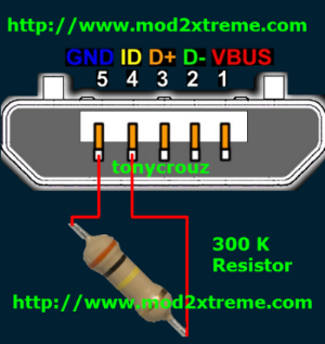 Al final el móvil funciona perfectamente. ¿Cómo le he hecho? Me hice un jig usb casero. Como sabéis el jig es un conector que pone en modo download al móvil, sin necesidad de presionar botones. Para ello debemos conectar las conexiones 4 y 5 del micro usb del móvil con una resistencia de 300 Kiloohmios (No ohmios). Como no tenía una de 300 KOhm, uní dos de 150 KOhm. Además como no tenía a mano un soldador, las uní enroscando os cables como ves en la foto. Como tampoco tenía adhesivo plástico a mano, utilicé cinta de carrocero para dejar los dos cables, que harán la conexión, lo más próximos posible, pero sin tocarse. ![]() Una vez construido nuestro "precioso" jig casero probamos, con el teléfono apagado, a conectar con las puntas, las conexiones 4 y 5 del microusb del móvil. Al final, con un poco de paciencia, hice conexión y el teléfono se puso en modo download sin presionar ningún botón. De esta forma, con el ODIN, pude meterle una Rom al terminal. ![]() Ahora mismo funciona a las mil maravillas y todo me ha salido gratis, porque las resistencias me las han regalado. ![]() Para ser sincero, antes de hacerlo así lo intenté hacer con los enchufes microusb de varios cargadores, pero al pelarlos los fastidié todos. Por eso decidí hacerlo lo más manual posible. ![]() Por si alguno se quiere hacer un jig casero os dejo una ilustración de cómo irían las conexiones en el microusb. Un saludo.