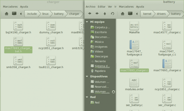 Lo pongo en imágenes, así creo que se va entender mejor ![]() Aquí tenemos los archivos que están relacionados con la batería, los marcados, pertenecen al n2 ![]() Como dije antes, la fusión al compilar crean este archivo ".o", cuando portamos un tweak al kernel, ejemplo touchwake, aparte de modificar el source, hay 2 archivos "touch_wake.c" y "touch_wake.h" se crea otro llamado touchwake.o Este ".o" de esta imagen pertenece a la batería, a la fusión de los 2 archivos de la otra imagen ![]() Aquí lo que comentaba de los valores de carga, que esta en este archivo llamado "max77693_charger_bat.h", os le dejo por si queréis echar un vistazo. ![]() Lo que comente de los 1900, era que lo vi en el fastcharge.c del n3, en el github de javilonas, esto fue cuando intente portar el fastchg para el n2, os dejo un link de los commits del github de javilonas Commits fastcharge https://github.com/javilonas/Thoth-S...9ab51835a0ec46 Valores en fastcharge.c https://github.com/javilonas/Thoth-S...-msm/fastchg.c Si estoy equivocado, que me corrijan, yo tampoco se mucho de esto, mas bien se un poquito y pueda ser que este dato erróneo, no quisiera...pero como e dicho, en lo que es respecto al kernel no veo esos valores de 2A. En el source del kernel, hay mas archivos, hay que entender que el núcleo del kernel es el mismo que del s3, no quiere decir que sea igual el kernel, ni que al compilar se usen todos los archivos, ya que en defconfig, hay muchos drivers, opciones, modulos, que no vienen definidos, bien por que no los implementa samsung por defecto, también otro tema es que no son validos para nuestro hardware, en fin, que es mundillo para echarle un rato bueno y armarse de paciencia ![]() Un saludo