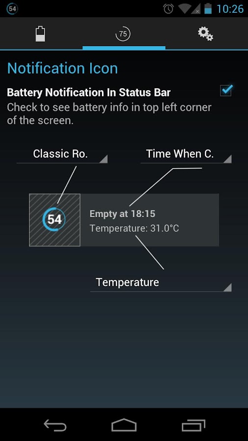 yo para la batería lo que hago es bajar la barra de notificaciones (lo puedes hacer con 2 dedos) y ahí sale el % de la batería