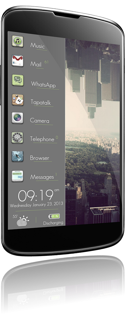 ![]() Side Panel. This theme was created using a Nexus 4 and Apex Launcher. 10x8 Grid Size / Hide Status bar and Dock / Set Margins to None. 5, 4x2 UCCW Widgets 11 Hotspots: Google Music, Mail, WhatsApp, Tapatalk, Camera, Telephone, Browser, Messaging, Time, Date and Screen Off (weather and clock). New Message, Missed calls, Unread mail. Download: http://db.tt/Q3mGxKY8 Download Wallpaper : http://db.tt/KlzHyggS Don't forget to show your appreciation if you like my work... Enjoy! |