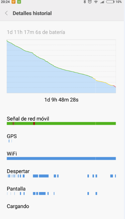 Los dos primeros ciclos fueron lo mejor en 4 meses de móvil. 8h y media o así la primera (con wifi siempre) y 7 y algo con datos y wifi. Pero desde entonces ha ido empeorando y no entiendo el qué. Las apps son las mismas.