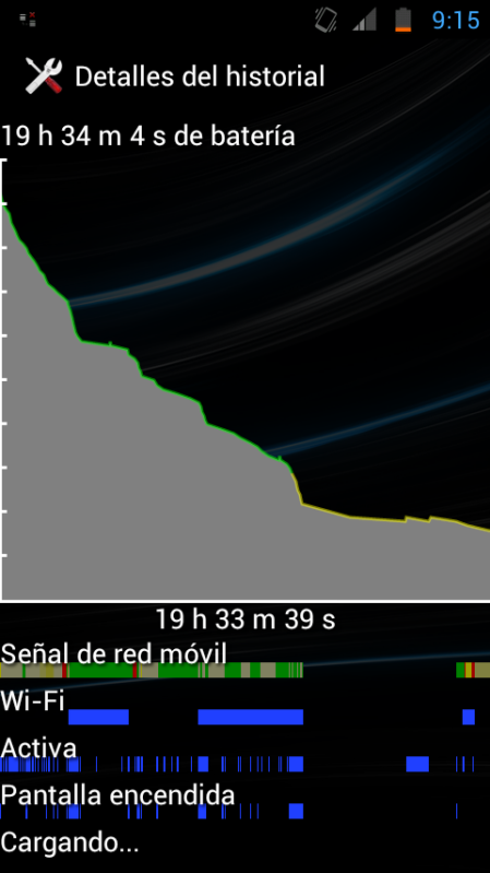 A mi me consume mucha batería, tanto ésta como la beta ICS y creo que el problema entonces no está en la ROM. Siempre que instalo hago wipes y ayer probé lo del battery calibration sin éxito. Durante toda la noche puesto en modo avión me consume un 4%. Paso captura de las últimas horas, hay que decir que he echado un par de partiditas a un juego chorra.