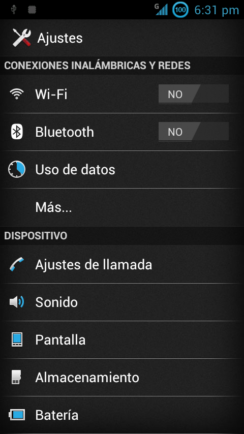 3º Icono de la bateria, la cobertura y los accesos derectos de la barra, la linterna, cambiar de 2G/3G, Wifi y demas