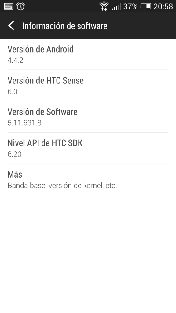 Yo tengo CID ROGER001 y fue actualizado a 4.4.2 en Enero, ahora me salto esta actualización de 700MB y viene con sense 6, viendo el menú del HTC one M8 es casi similar con diferencias en herramientas en la cámara. Ademas cambio todos los tonos de llamada y notificaciones que son bien buenos. lo único que no encuentro es el botón que menciona que borra todas las aplicaciones recientes. Dejo algunos screenshot de la actualización.