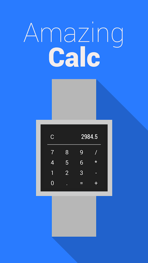https://play.google.com/store/apps/d...isoft.calcwear Una calculadora para el relojito. A mí no me funciona la tecla de borrar, pero me voy apañando. |