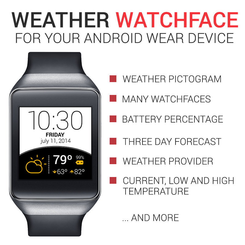Mi whatchface favorita es esta, además creo que es la única que muestra el tiempo, la versión gratuita es en blanco y negro pero por 0,99 es más personalizable.