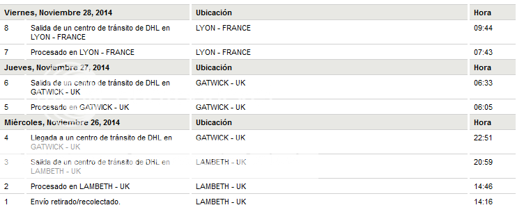 Ayer salio de gatwick, no se cuanto tarda desde ahi. Desde que salio de gatwick en tu envio cuantos dias tardo? |