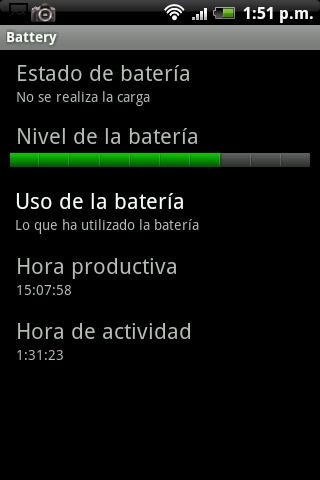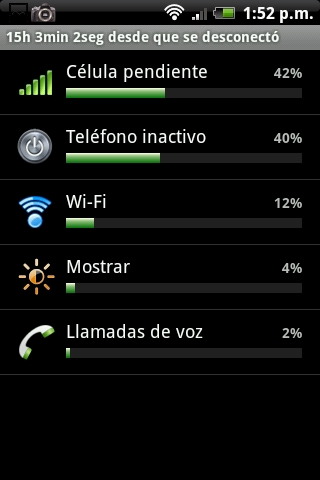 efectuadas por trastear lo que uno no debe acabo de instalar el morelocale 2, y ya ni viene el idioma español España , solo el español usa .![]() Respecto a la batería, el último flasheo de la rom fué ayer sobre las 22:30 con un 90%, después de la consabida bronca con la parienta .![]() ![]() Da la impresión que ha optimizado mucho el tema del consumo. Un saludo Última edición por MrClasicos Día 11/04/10 a las 14:05:42 Razón: Reducir tamaño capturas |