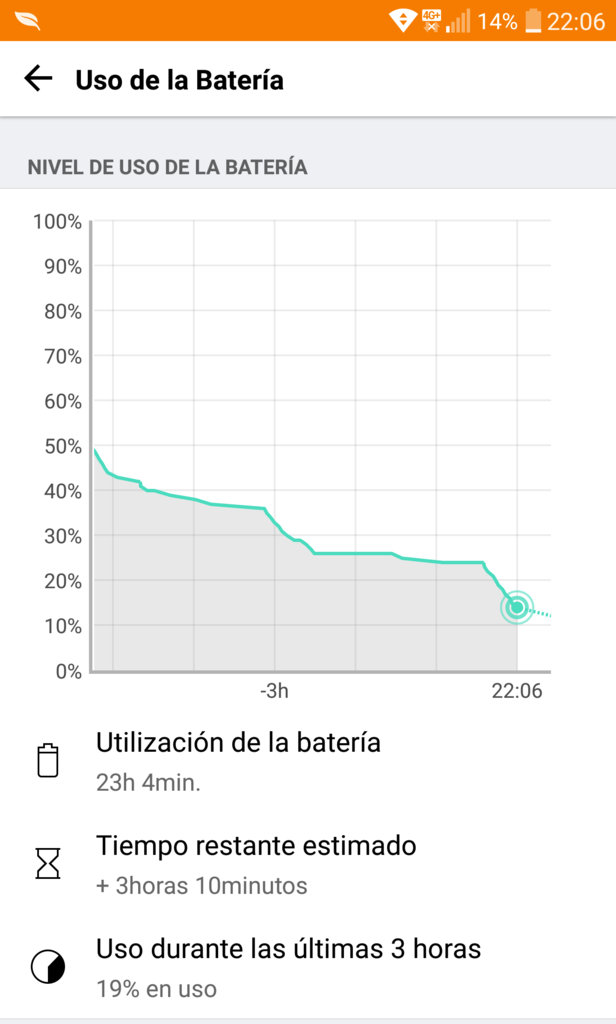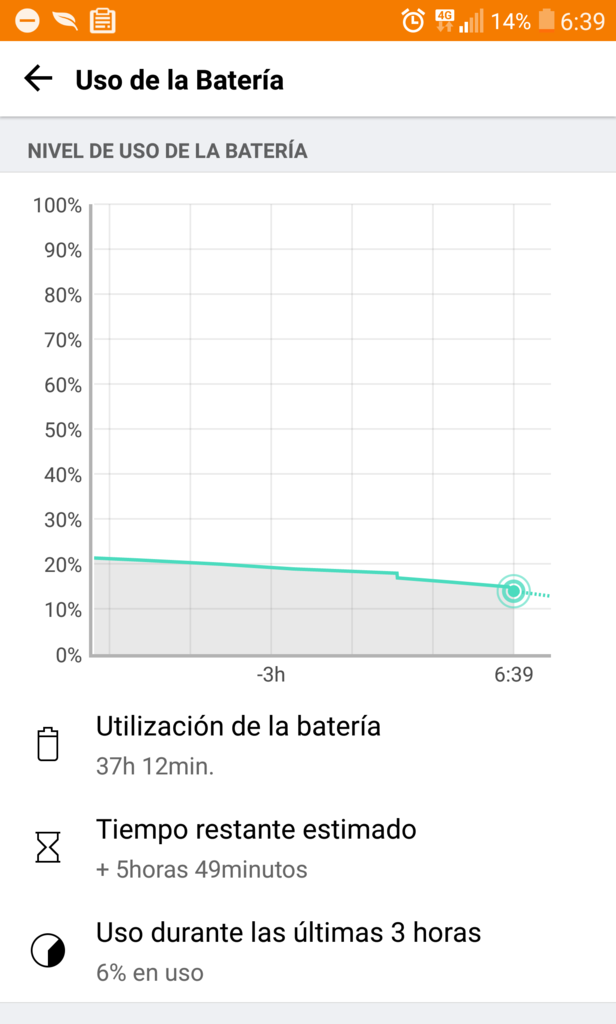 Mi consumo dos días después de actualizar a Nougat. 3 horas de pantalla.