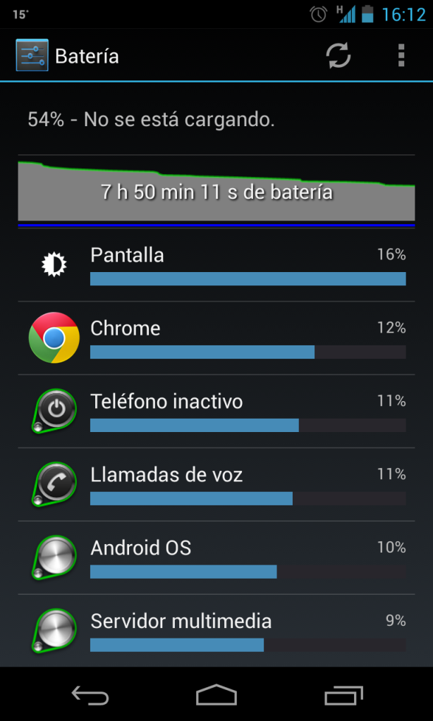 Yo hoy, después de dos semanas es la primera vez que llego con holgura a las 4 horas de pantalla. Comentar como curiosidad que es el primer día que tengo el Snapdragon Battery Gurú funcionando después de 4 días de aprendizaje y he notado una gran mejoría (o eso o que ayer he usado otro cargador).