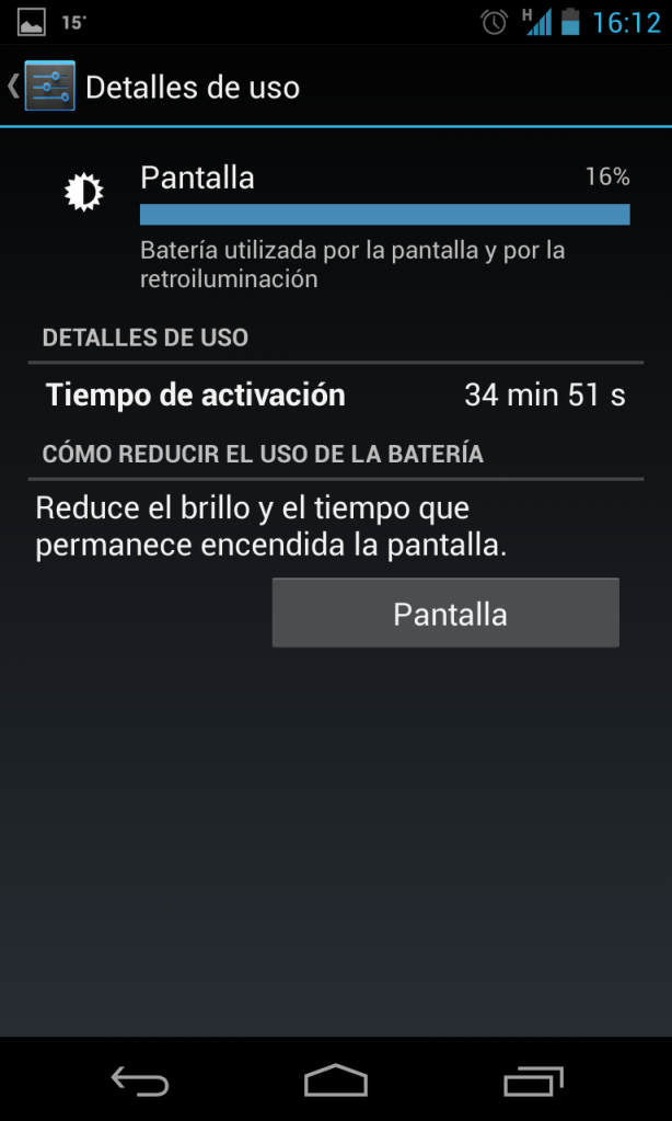 Pues yo todavía no he conseguido que me dure más de 3 horas la pantalla. También es cierto que lo cargo todas las noches, ya sea al 15% que al 70%. Tengo todo activado y el brillo al máximo. Tampoco le doy mucha importancia al tema de la batería siempre y cuando me dure el día entero dándole un uso normal. Si sé que lo voy a tener que usar más de lo normal (gps, reproducir videos...), le bajo el brillo y desactivo todo lo que no voy a usar.