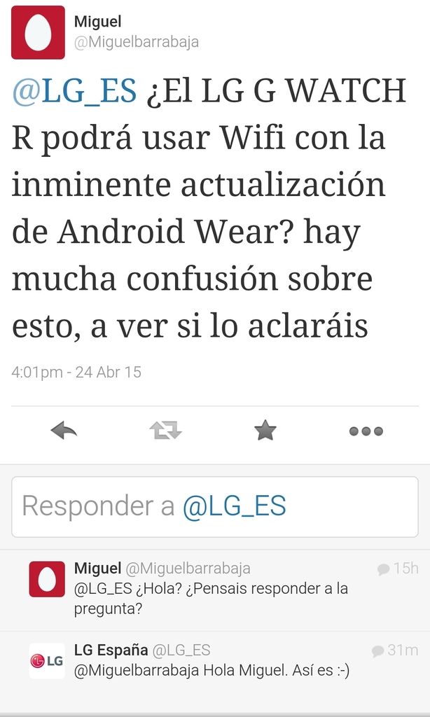 Una vez confirmado esto, solo queda esperar lo que hace LG, si finalmente no les sale de "ahí" dar soporte Wifi al LG G Watch R pudiendo hacerlo, para mí esta marca estará muerta.